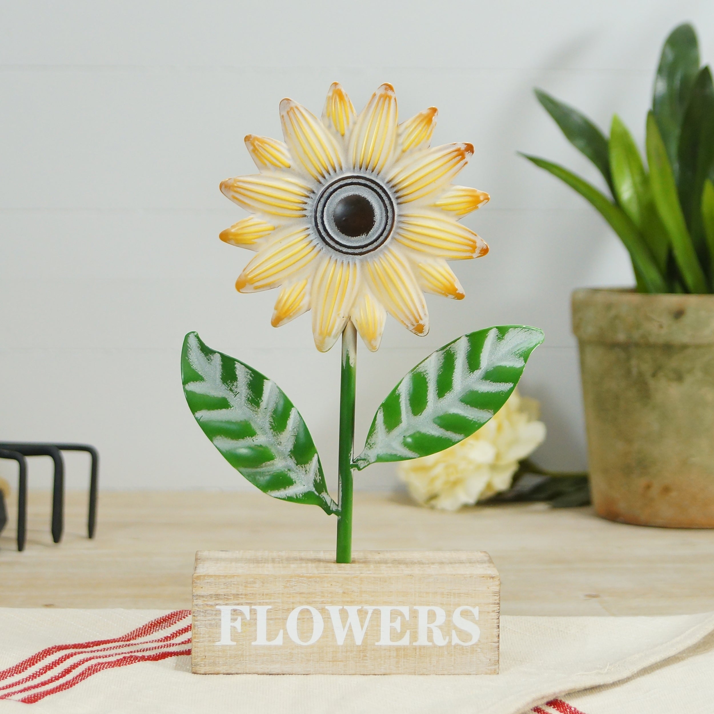 "Flowers" Wood/Metal Tabletop Decor