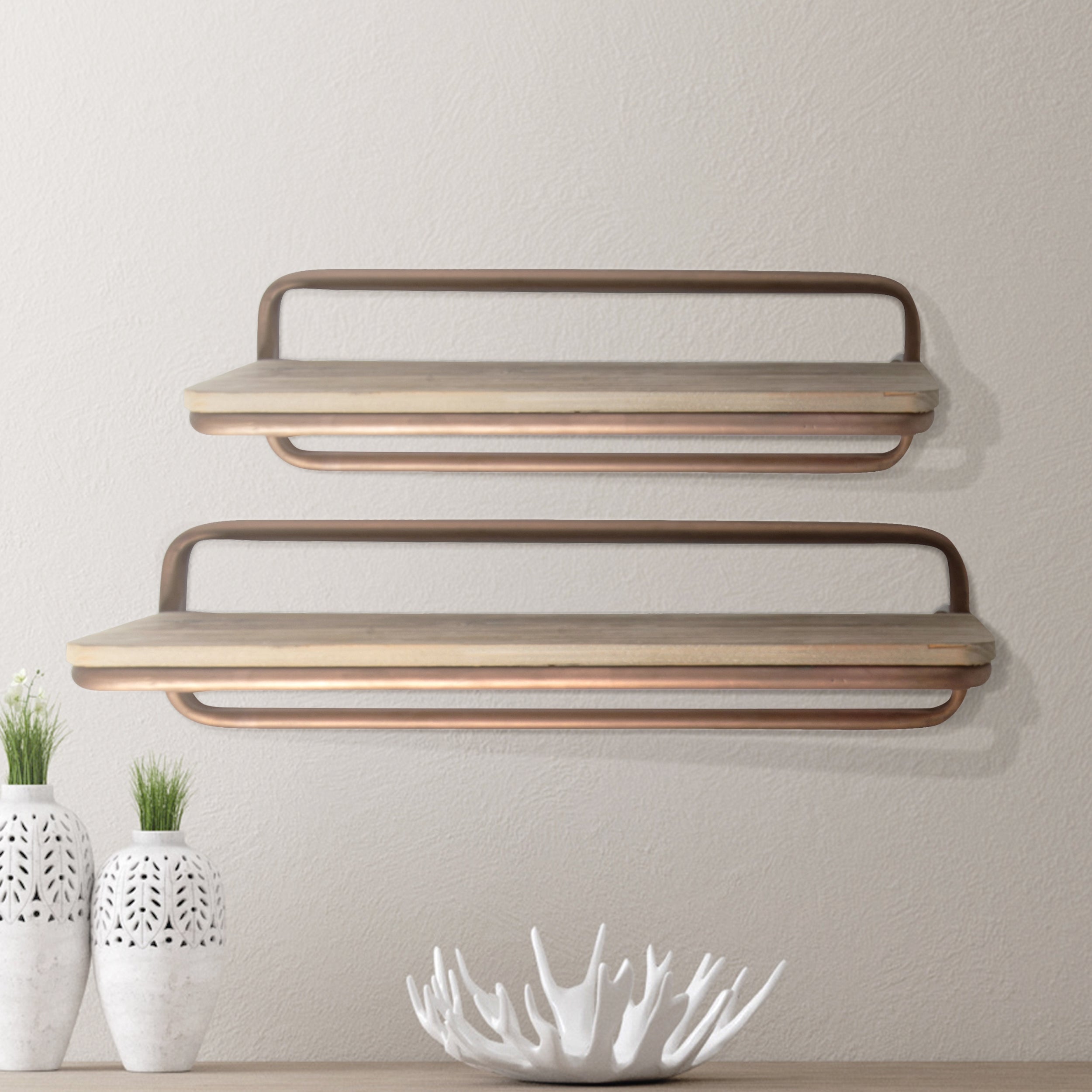 Refresh your surroundings with personal mood and touch, decor thoughtfully curated from VIP’s classic collection. Made of metal, these wall shelves are the perfect addition of character and charm for your living space.
