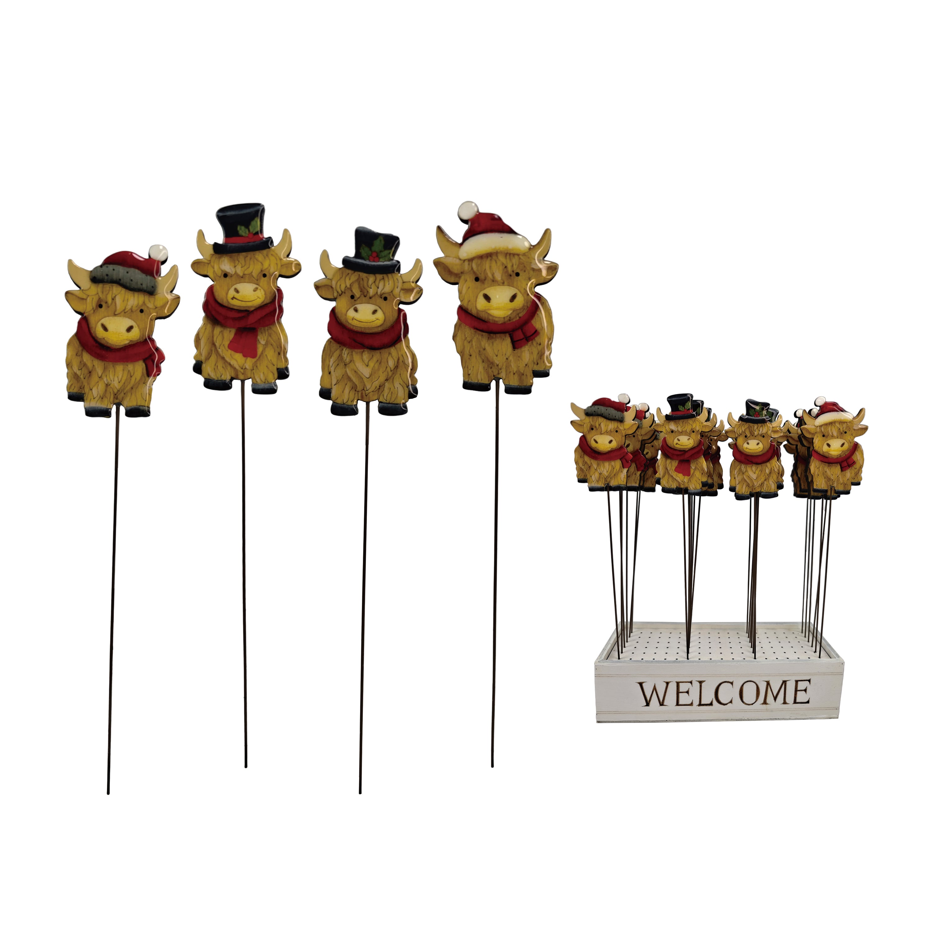Plywood Holiday Highland Cow Picks 4Styl/6EA/24PDQ