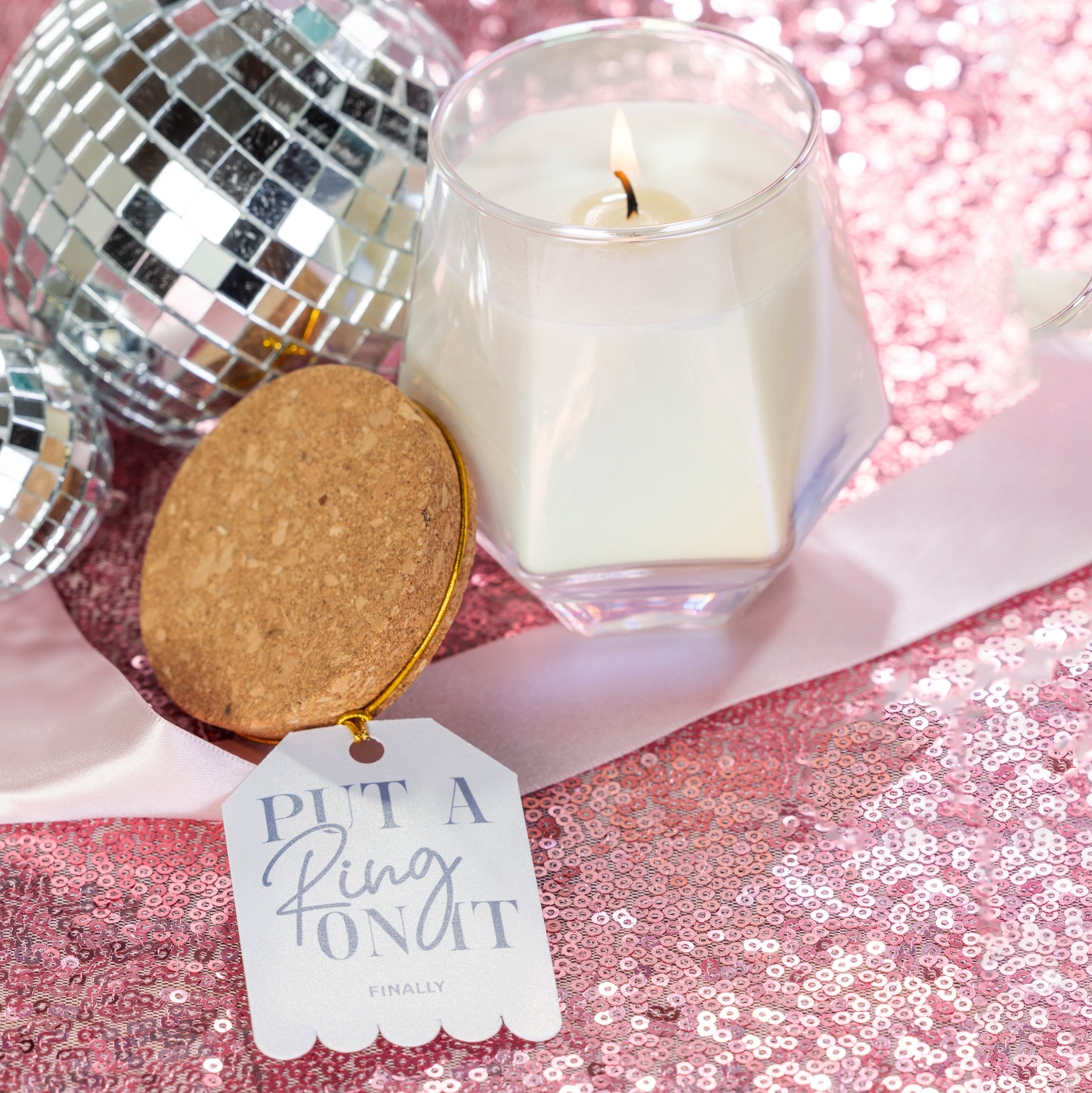 Put A Ring On It White Geometric Candle