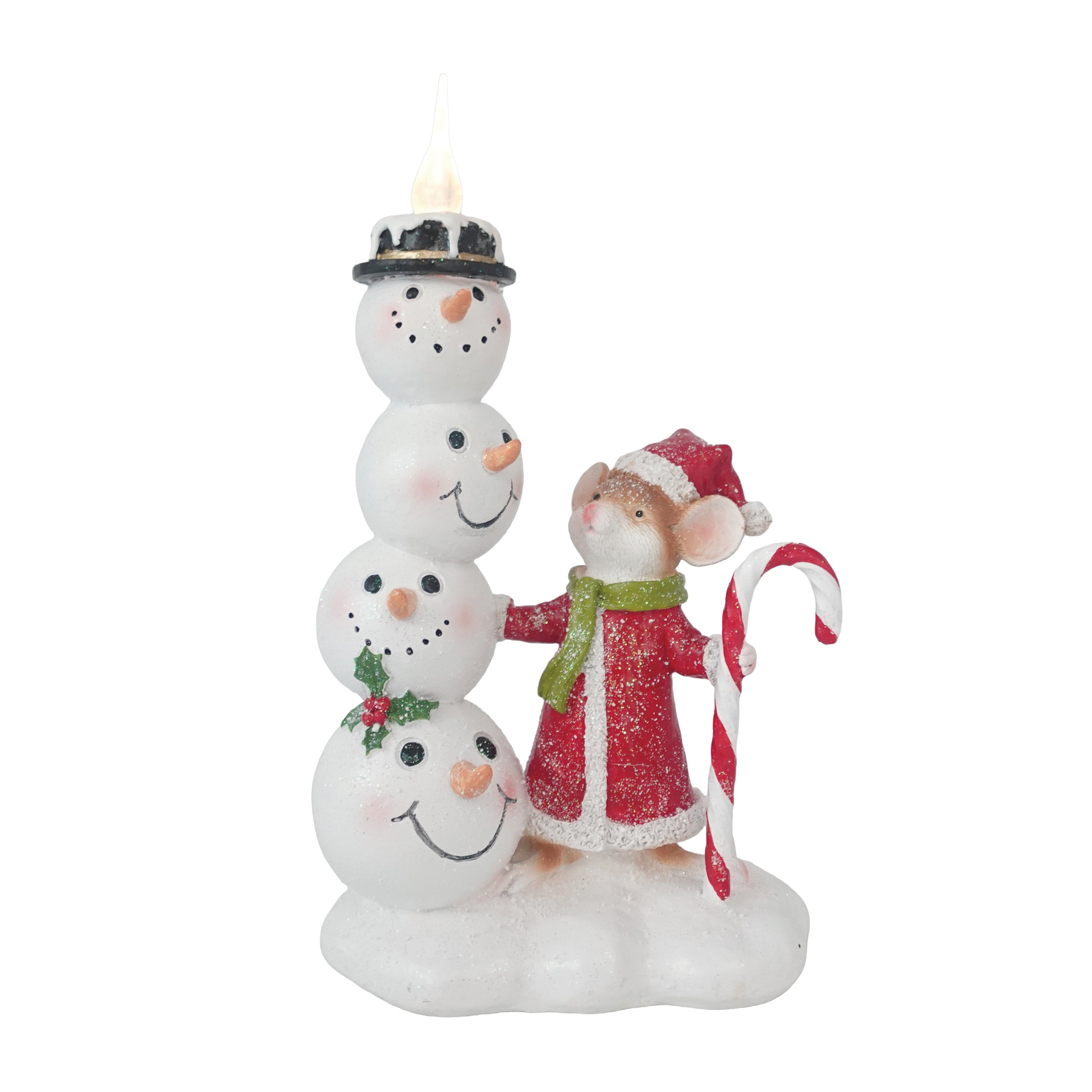 Res LED Snowman w/Mice Decor