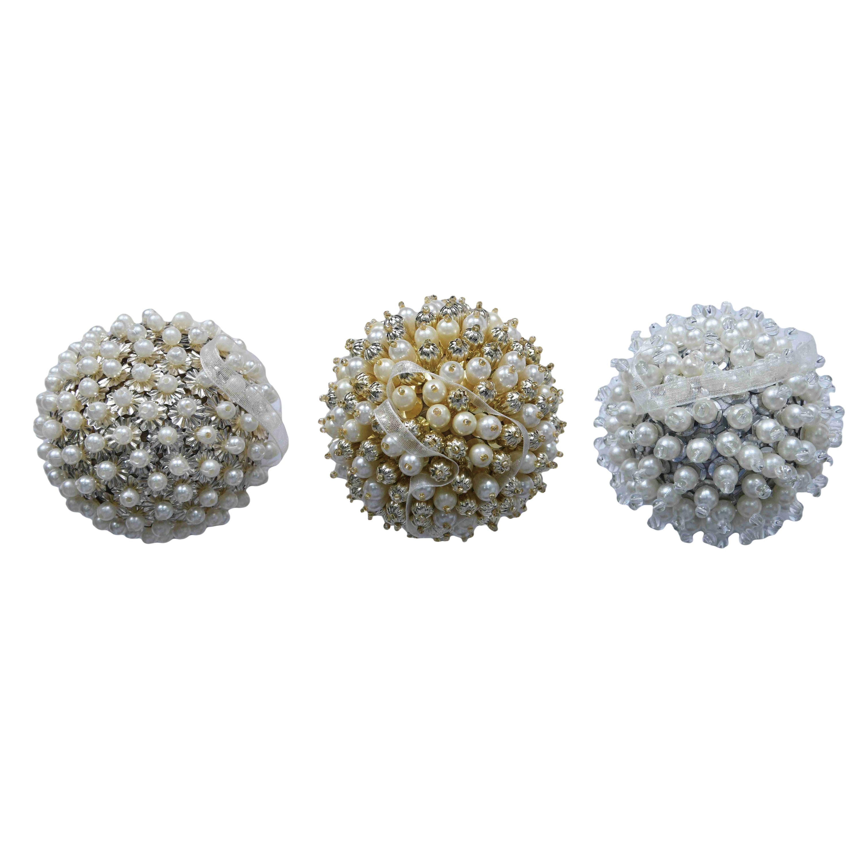 Sequin/Faux Pearl Ball Orn 3 Asst