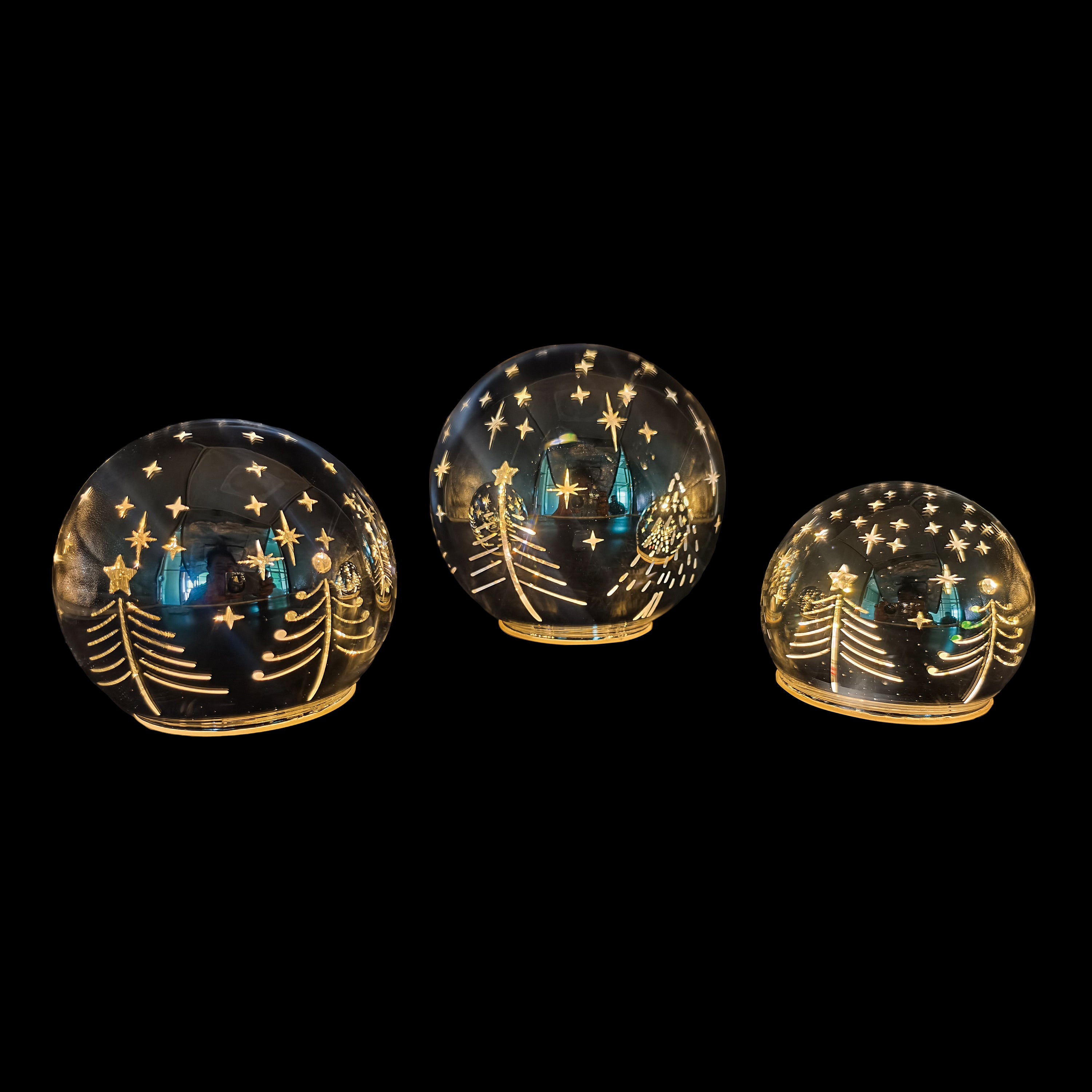 SET/3 LED 6" Silver Glass ball, 10 LEDs, battery 3AA w/ remote