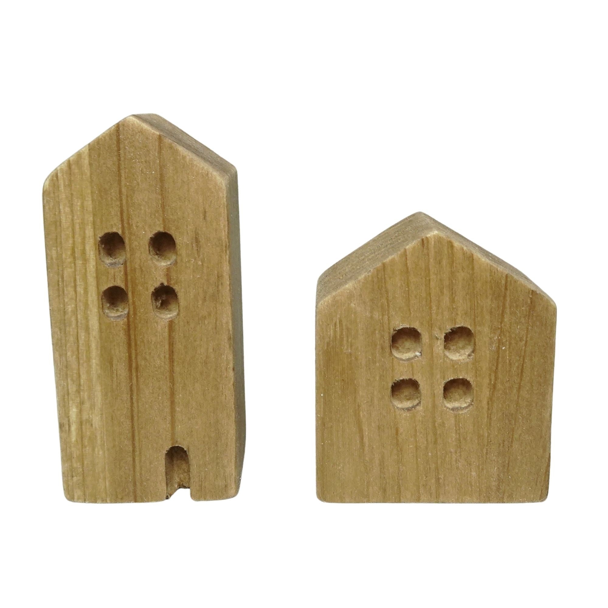 Wood Block House Table Decor Natural S/2