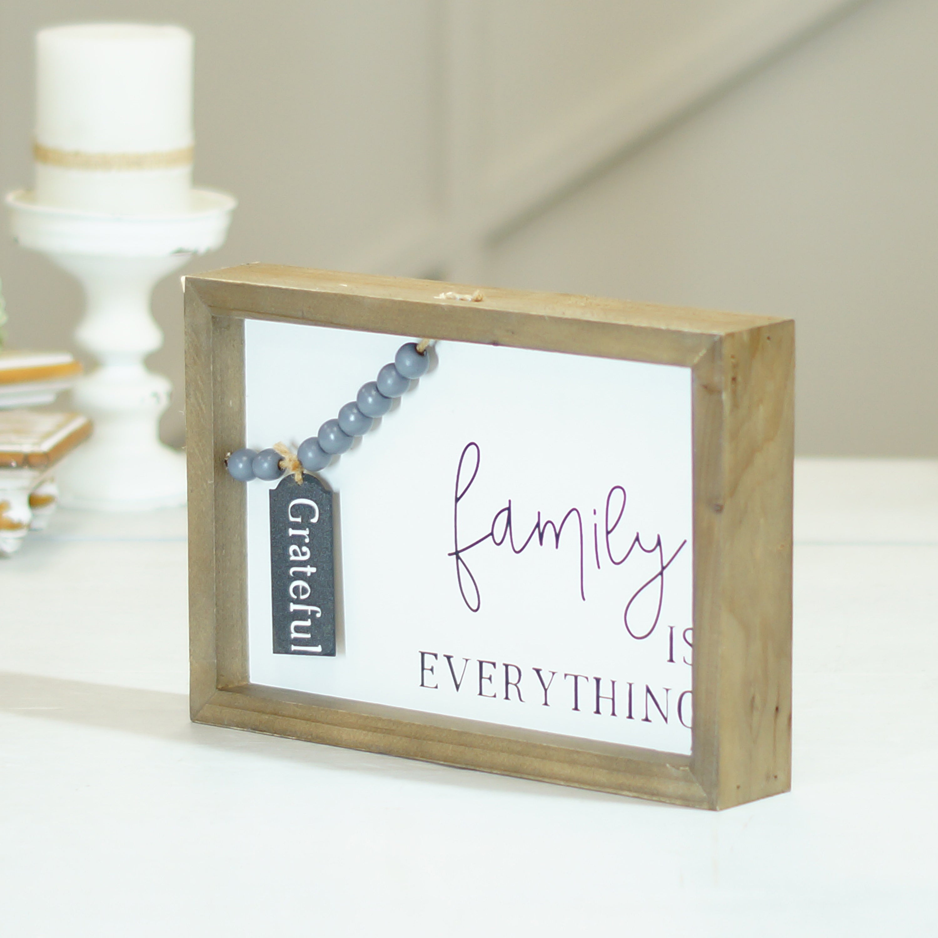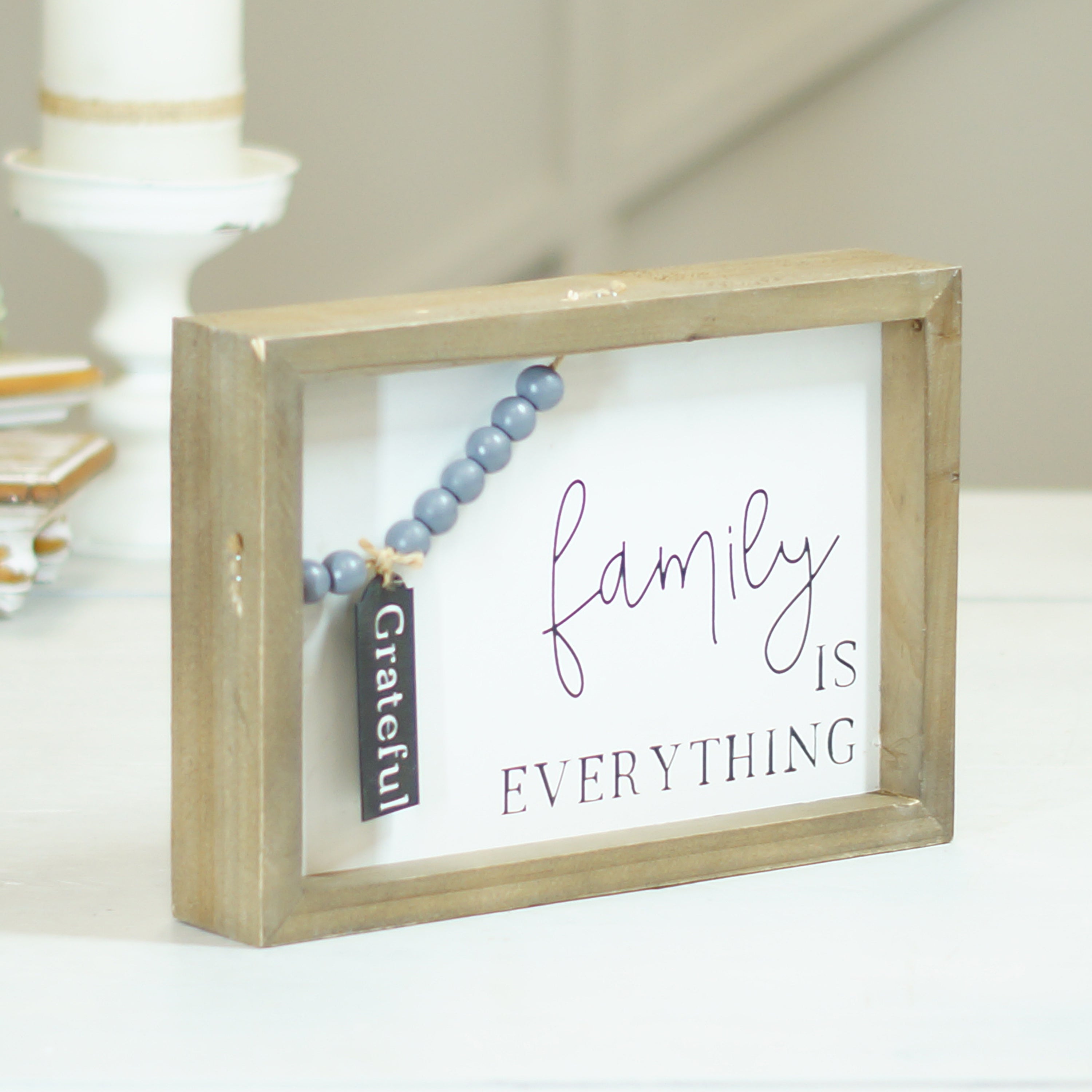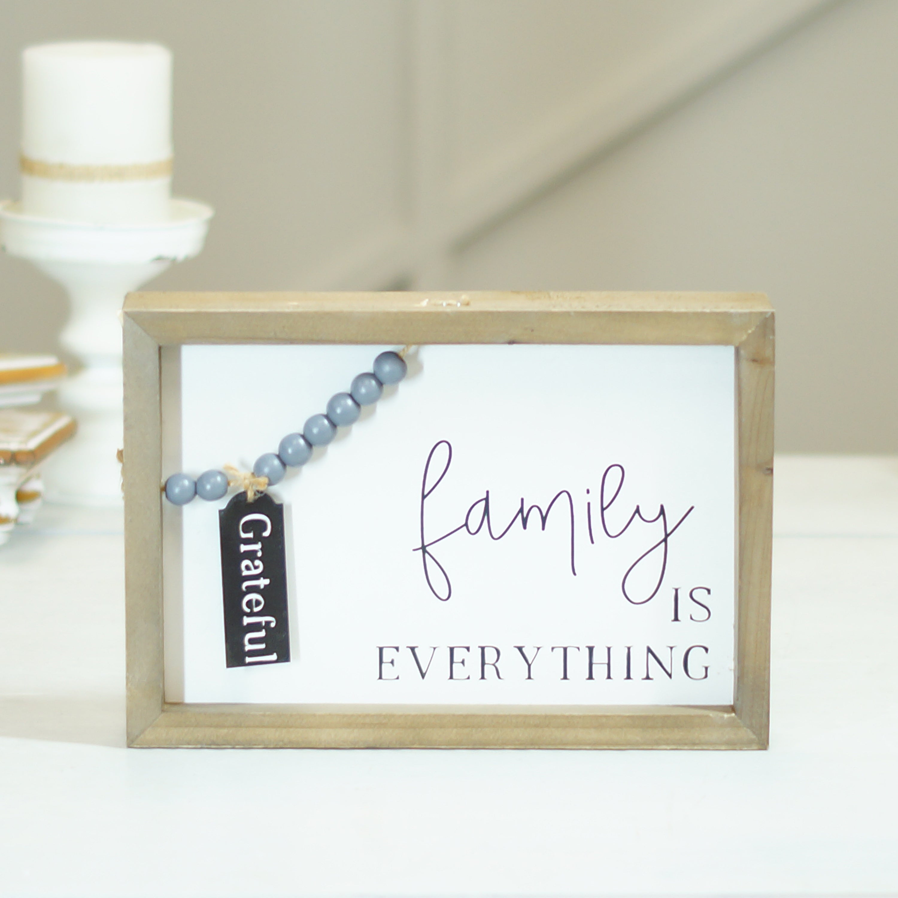 Wood Family Sign W Beads