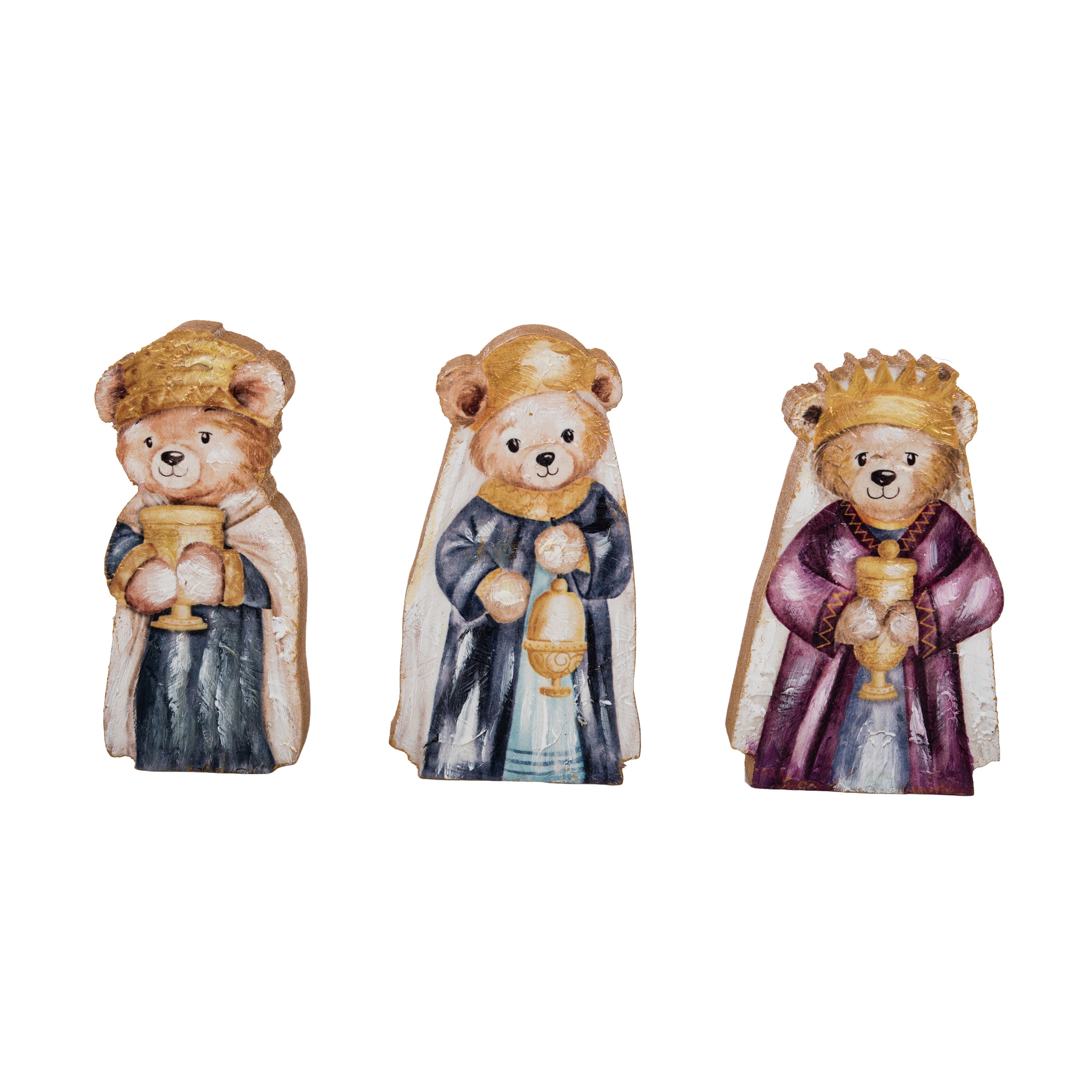 Wood Hand Painted Bear Kings S/3