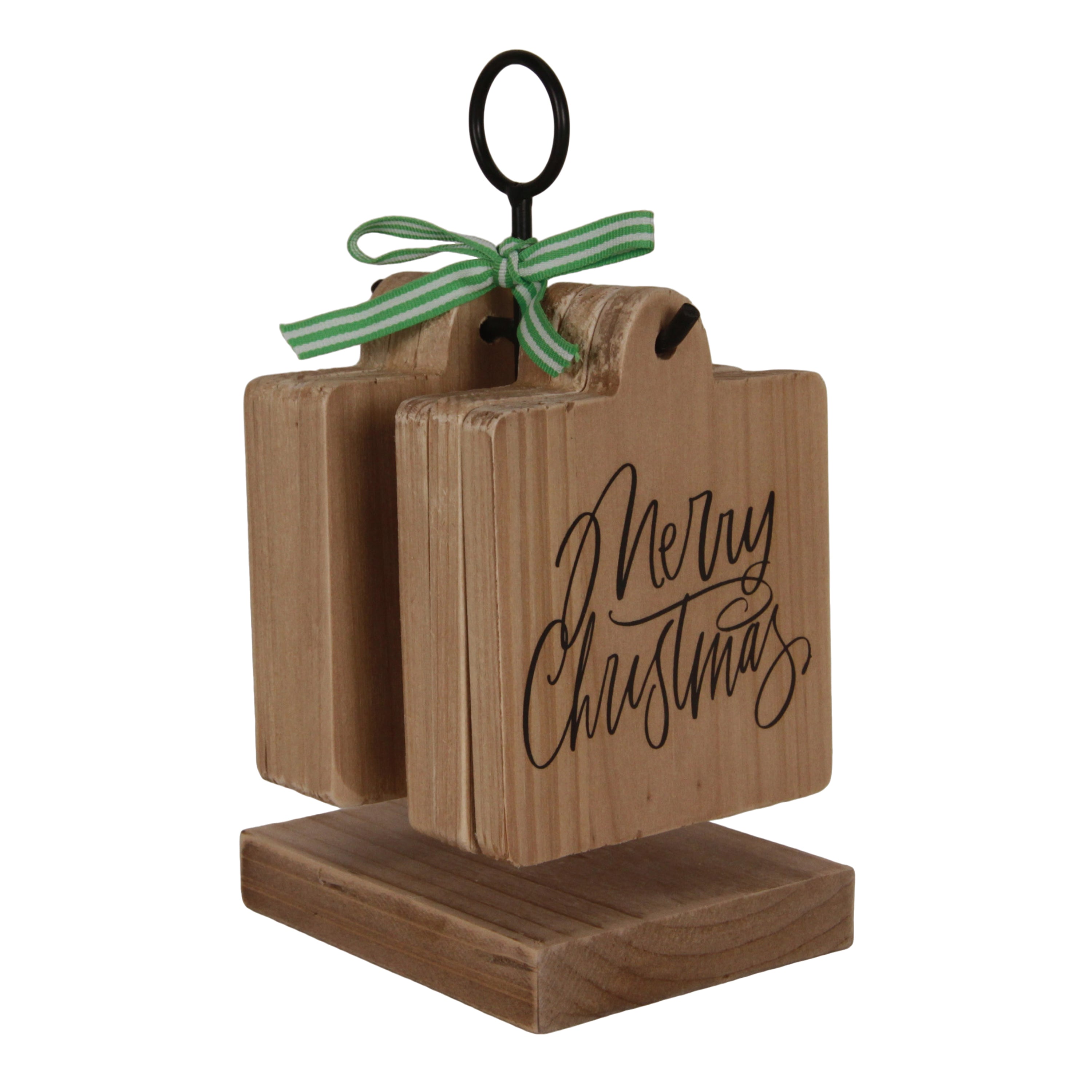 Wood/Metal Stand Merry Christmas Coasters S/6
