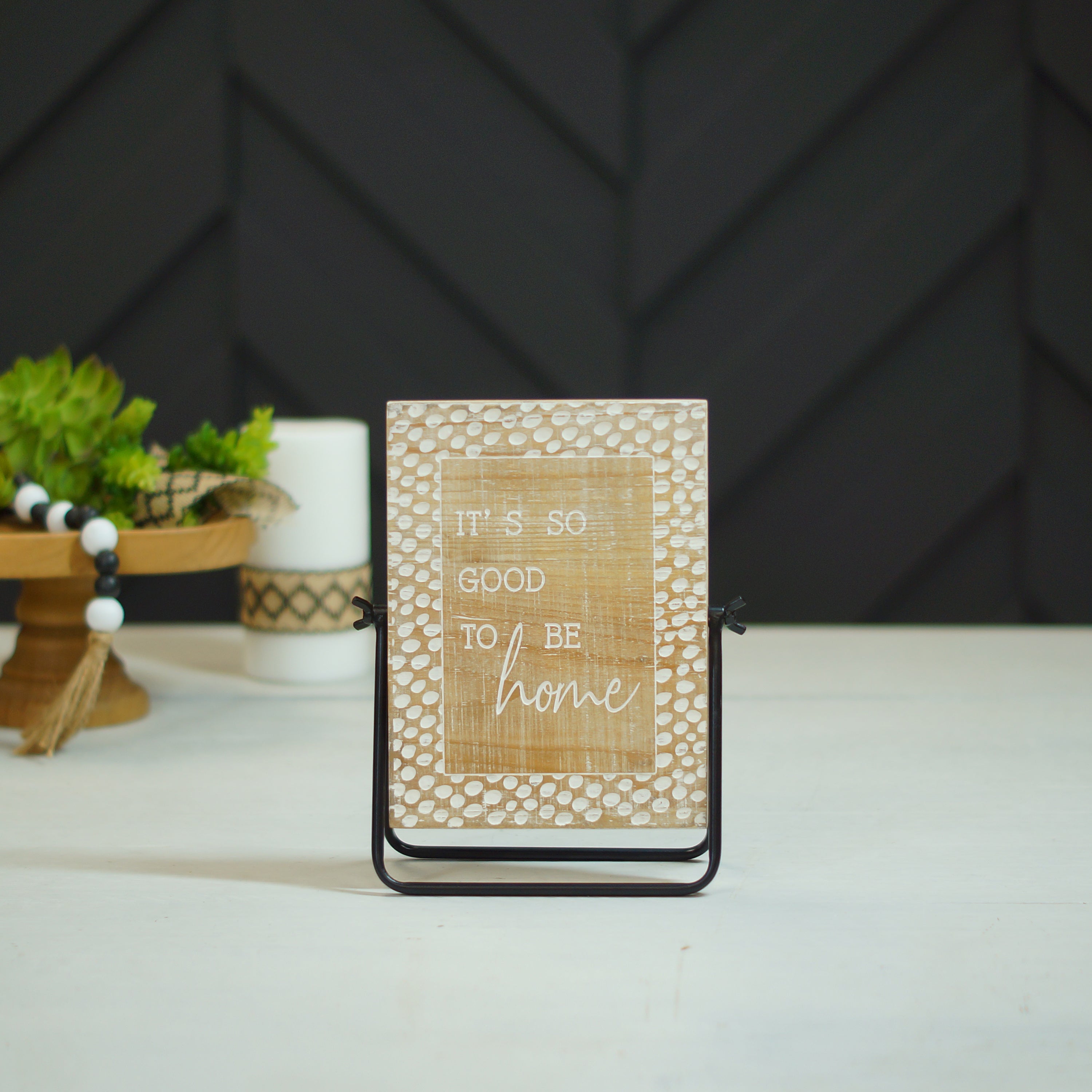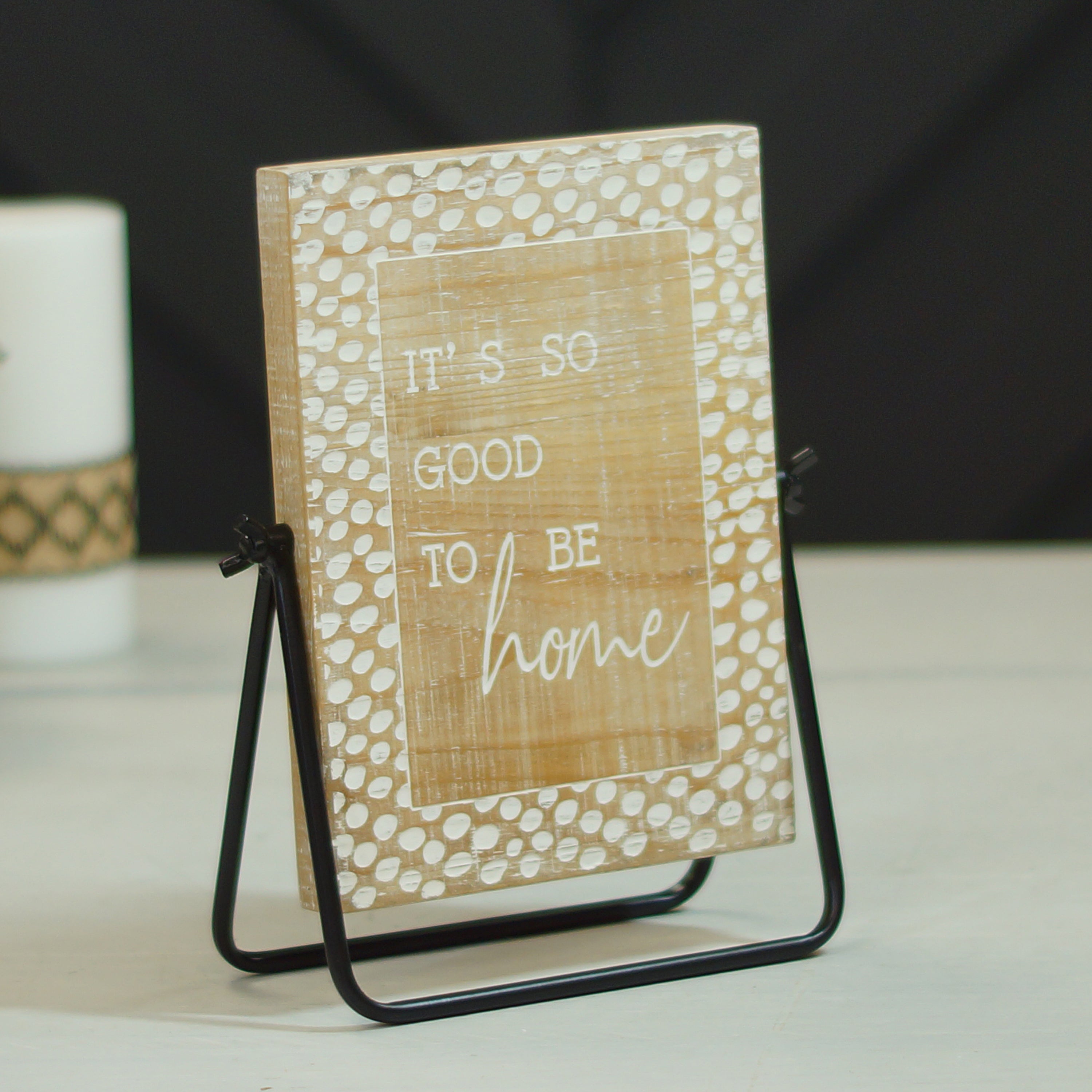 Refresh your surroundings with personal mood and touch, decor thoughtfully curated from VIP’s Hearth & Home collection. Made of wood, this table sign is the perfect addition of character and charm for your living space.
