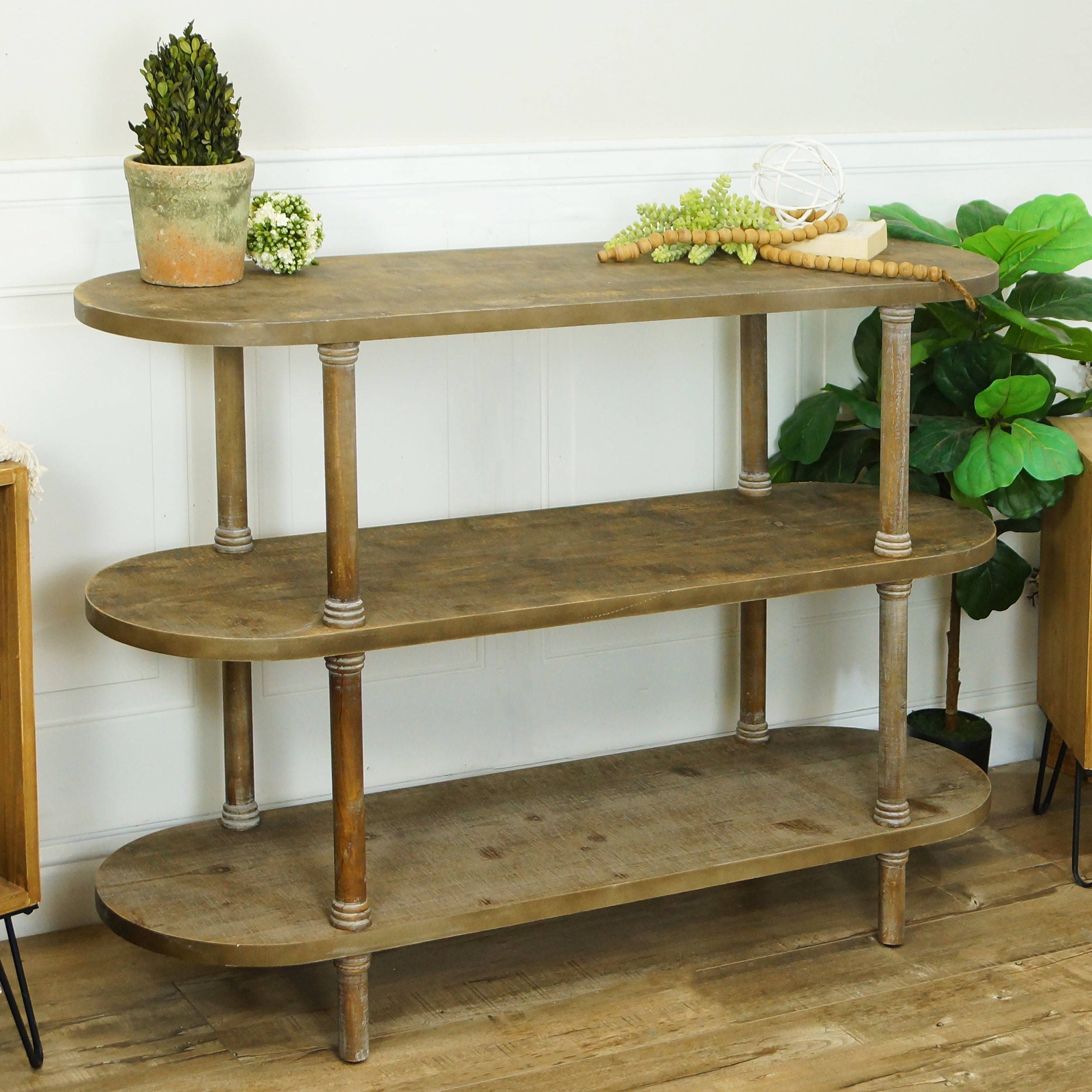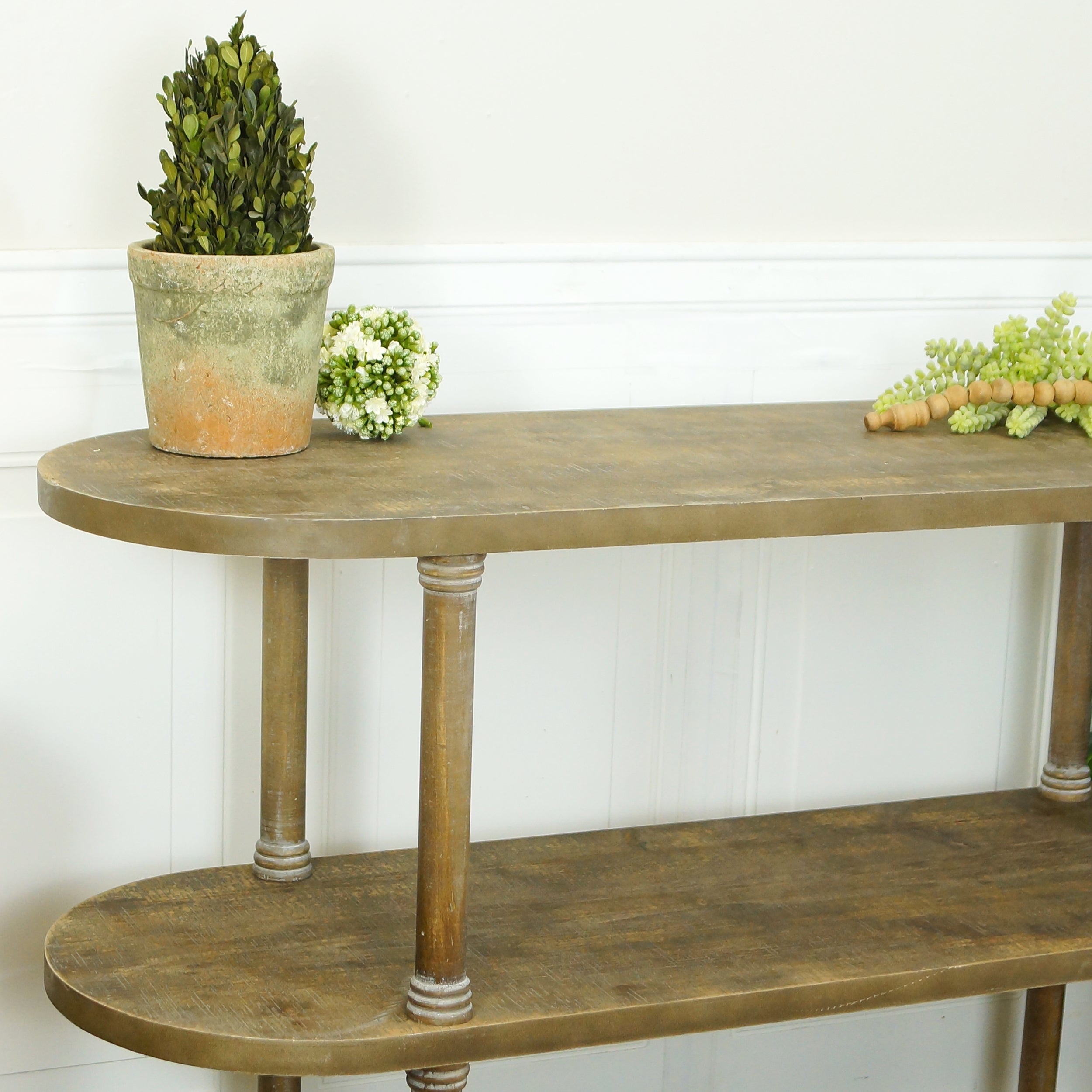 Refresh your surroundings with personal mood and touch, decor thoughtfully curated from VIP’s French Market collection. Made of wood, this shelving unit is the perfect addition of character and charm for your living space.