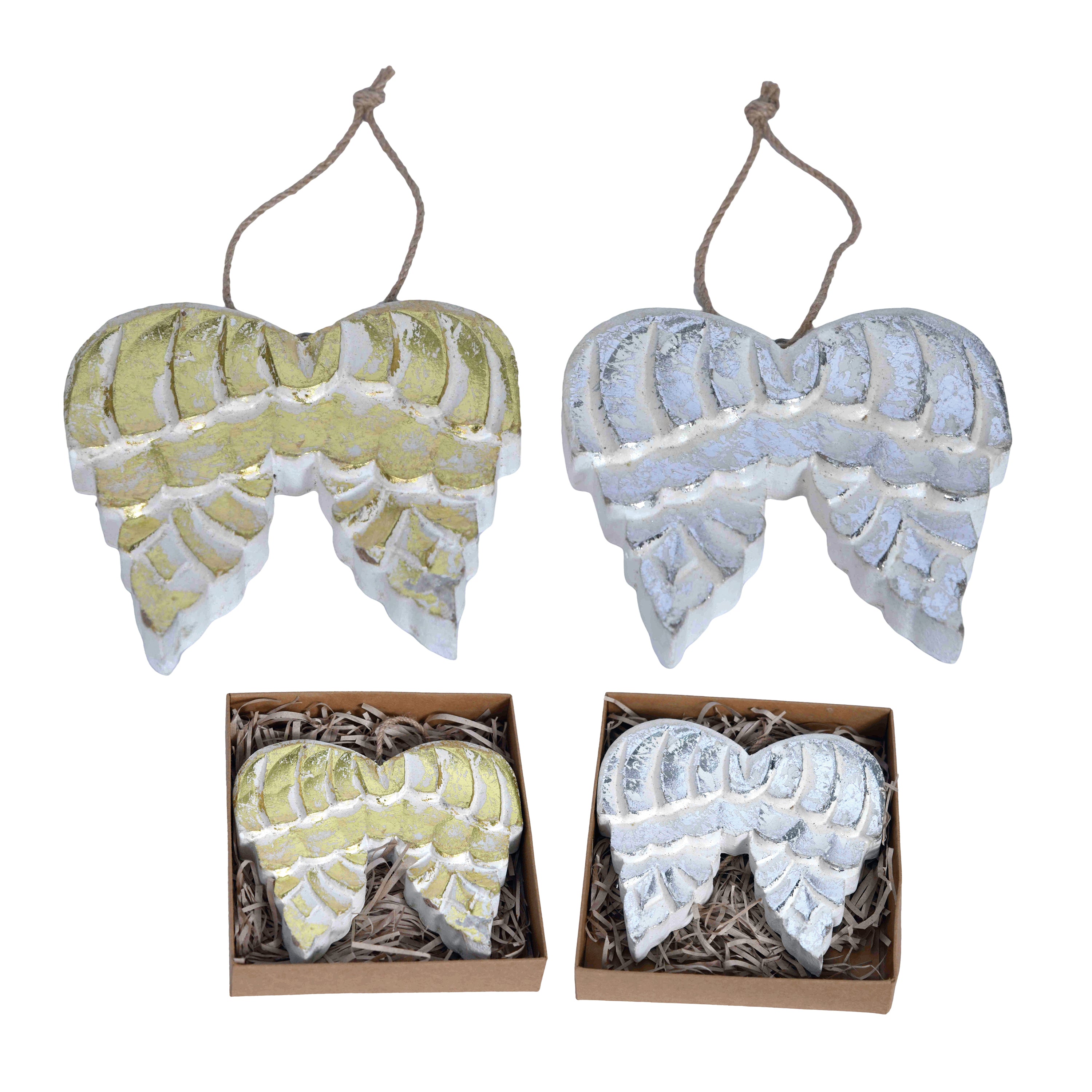 Wood Wing Orn w/Metallic in Box 2 Asst